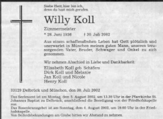 alle Kunden die Herrn Willy Koll in München persönlich kannten den guten